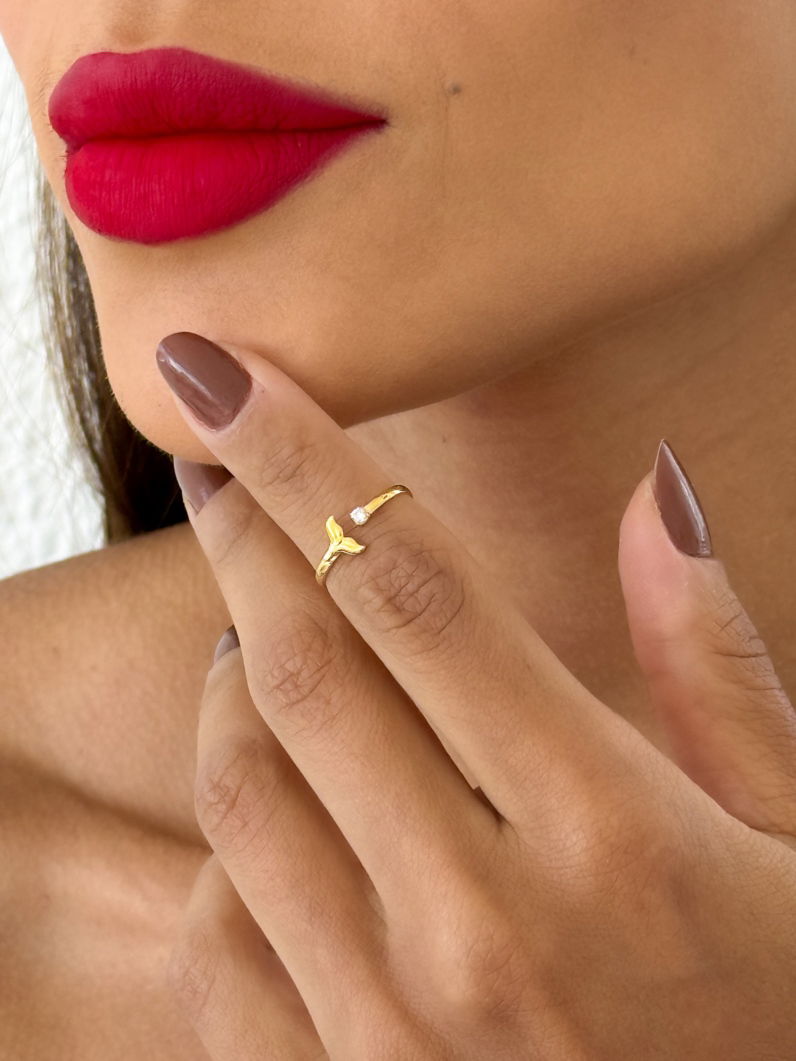 Mergulhe no estilo com este anel encantador que traz a magia do oceano para o seu visual. O design de cauda de sereia é super delicado e conta com um ponto de luz brilhante para destacar suas mãos com elegância. Por ser regulável, ele se ajusta perfeitamente a qualquer dedo, garantindo conforto total sem mistérios. O banho de ouro 18k oferece aquele brilho luxuoso e duradouro que a gente ama. É a peça ideal para quem busca acessórios temáticos com um toque moderno e sofisticado. Sua pele vai adorar o acabamento seguro e hipoalergênico desta semijoia feita para brilhar.