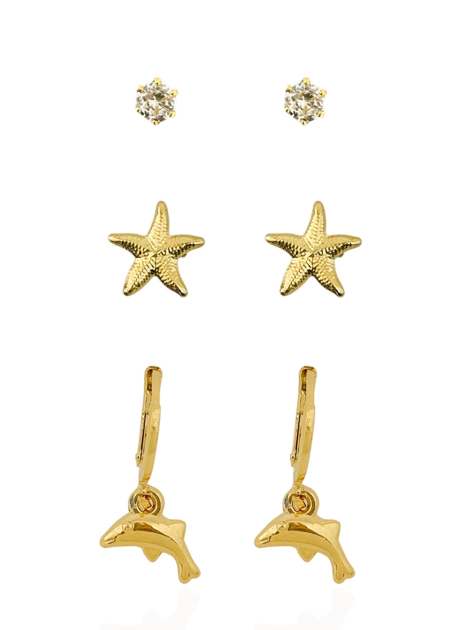 Trio de Brincos Ponto de Luz, Estrela e Golfinho
