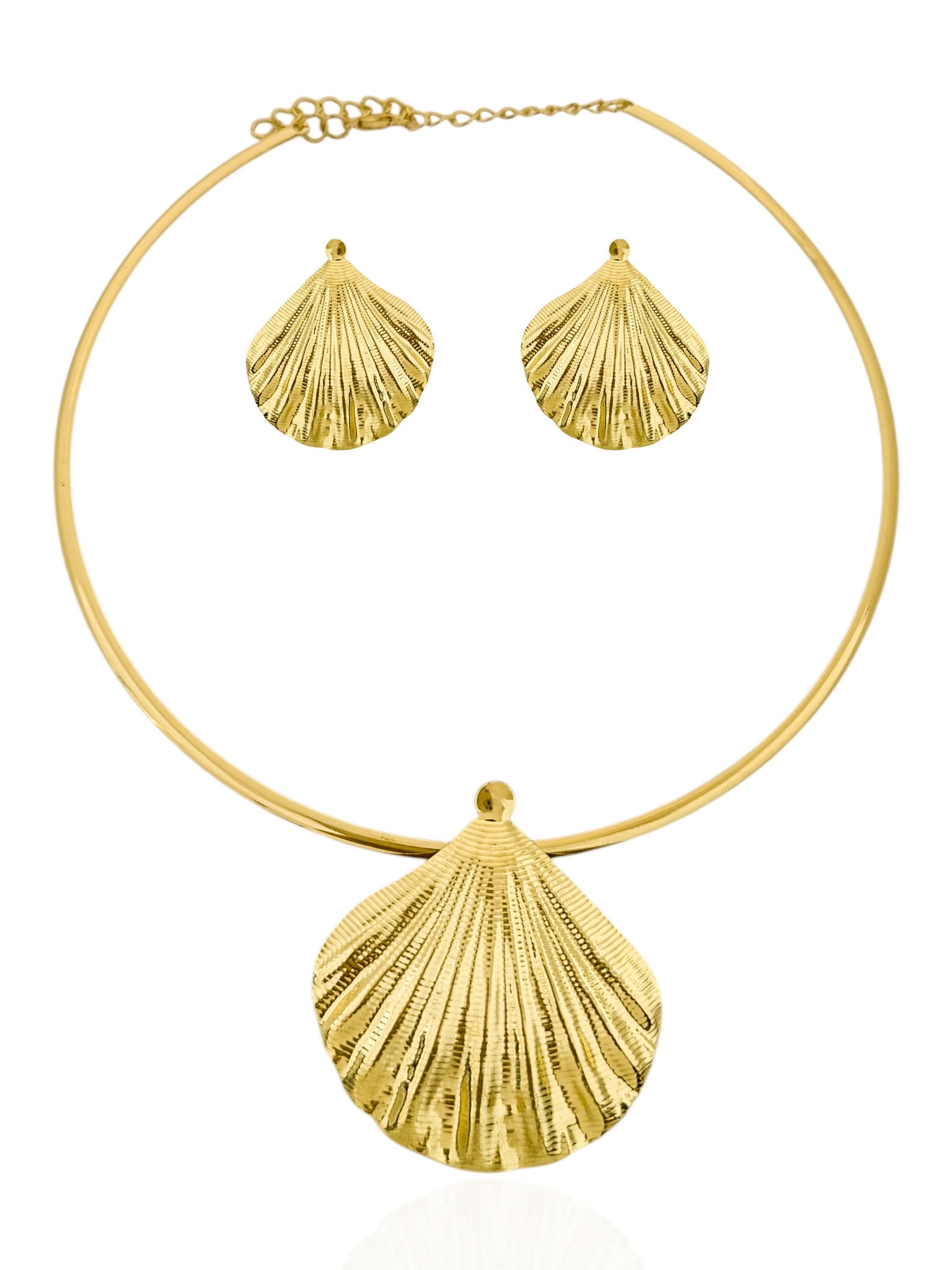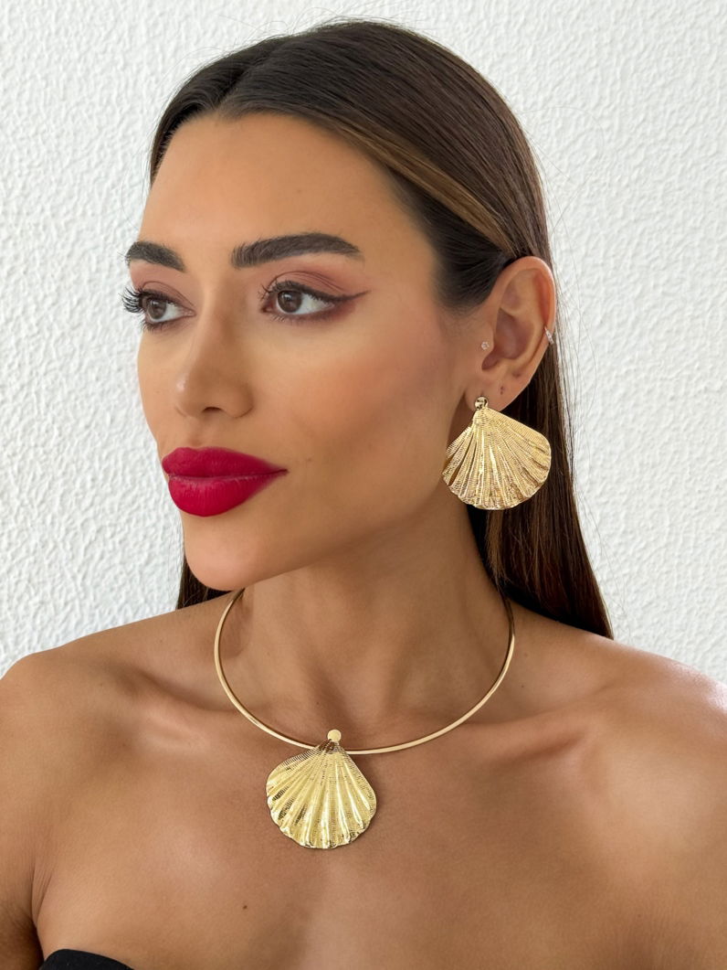 Este conjunto de choker aro e brincos traz o charme do oceano para o seu visual. Com design de concha texturizada, é a peça perfeita para iluminar qualquer momento do dia. O acabamento folheado combina a nobreza do ouro 18k com a versatilidade da prata. Sinta-se radiante e cheia de estilo com acessórios que unem elegância e durabilidade. Uma escolha leve e sofisticada para destacar sua beleza única.