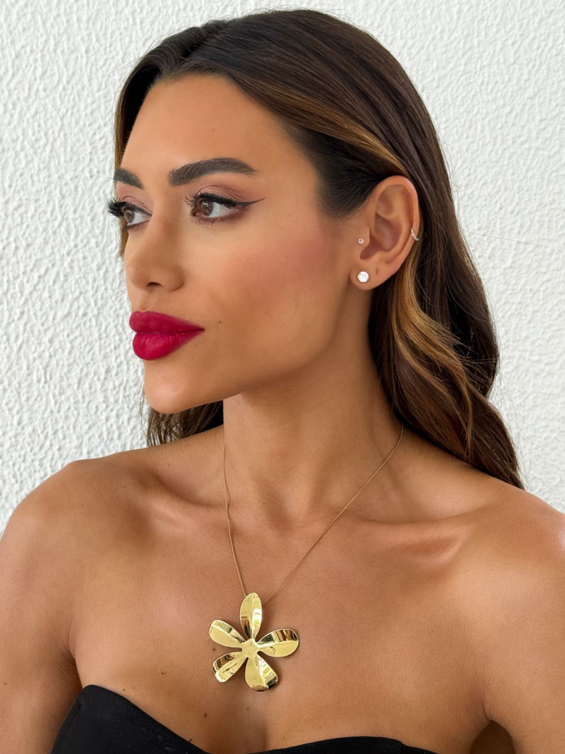 Dê um toque especial ao seu visual com este lindo colar de flor lisa. Perfeito para iluminar qualquer look, ele combina a sofisticação do banho de ouro 18k com o charme do banho de prata. Cada peça é confeccionada com acabamento em verniz para garantir um brilho duradouro e muita resistência. É a escolha ideal para quem ama acessórios modernos, elegantes e versáteis. Sinta-se confiante e radiante em todas as ocasiões com essa joia delicada.