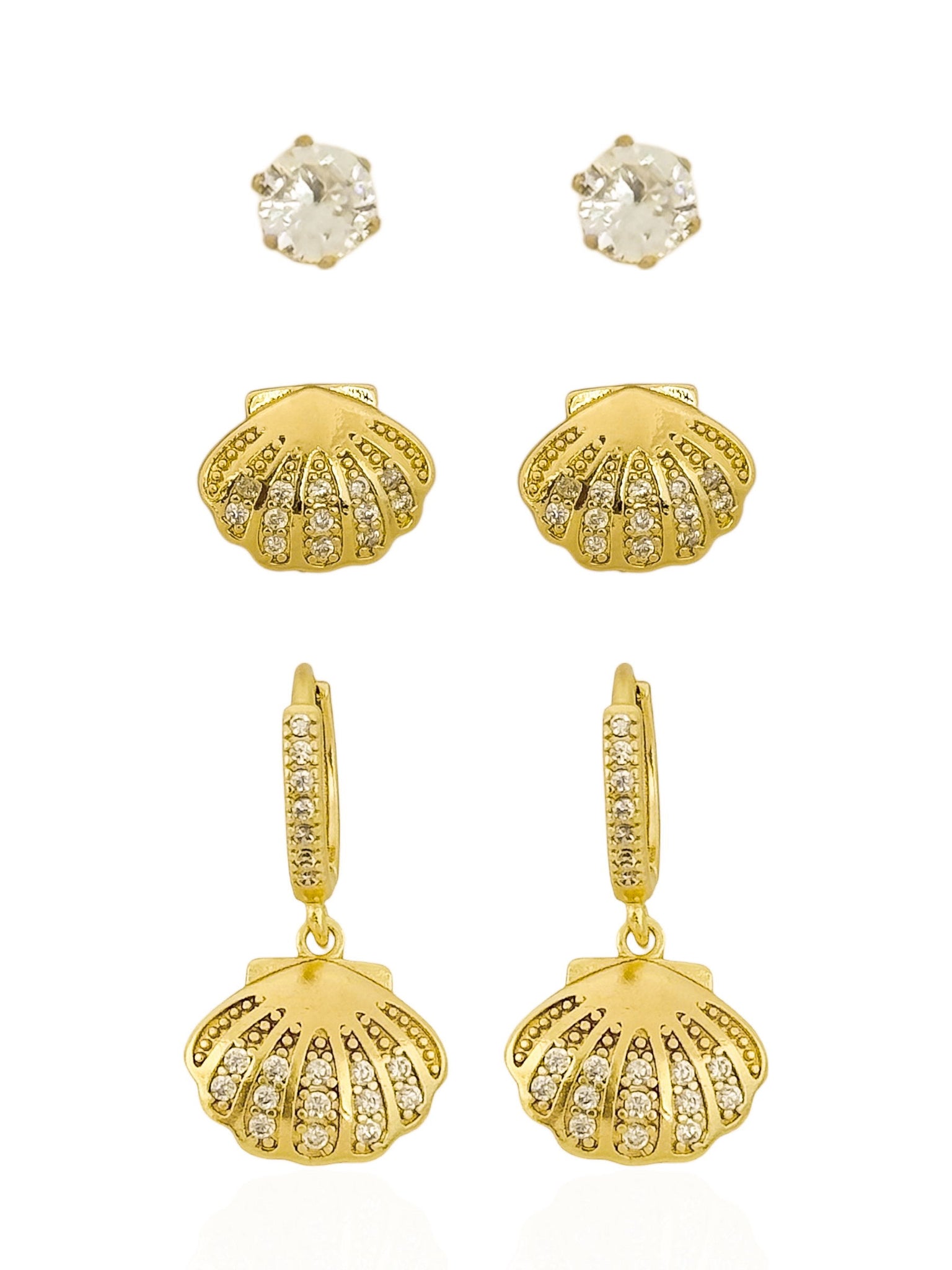 Prepare-se para brilhar com este trio de brincos irresistível! Combinando a sofisticação do ouro 18k com o charme da prata, este conjunto traz um design de concha cravejada que é puro encanto. Perfeito para dar aquele toque especial no seu visual, seja de dia ou de noite. A qualidade do banho garante um brilho duradouro que você vai amar exibir por aí. Versátil e delicado, é o acessório que faltava para elevar sua produção com muito estilo e confiança. Sinta-se radiante em qualquer ocasião com esta escolha certeira.